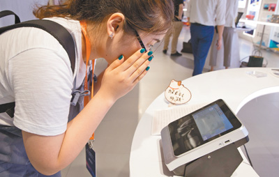 圖為參觀者在體驗嵌入式虹膜識別儀。新華社記者 金立旺攝 中國科學院應用成果展暨中科院硬科技—科技服務網(wǎng)絡計劃雙...